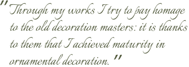I design and make decorative and ornamental items in building frameworks. The finishing touches in such contexts are carried out by means of stucco, frescoes and tempera, according to tradition, in order to match the original setting of the location and satisfy the client’s requirements at the same time.